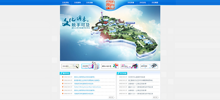 公司和华博集团联手为浦东文化局打造的浦东数字文化平台,对于浦东文化信息以数字化的方式在互联网上做集中展示。网站设计上既要体现出浓郁的文化气息,又要有数字科技的感觉。公司在项目设计上投入了大量人力,经过多次脑力激荡和反复的修改设计稿,最终达到了预想的效果。